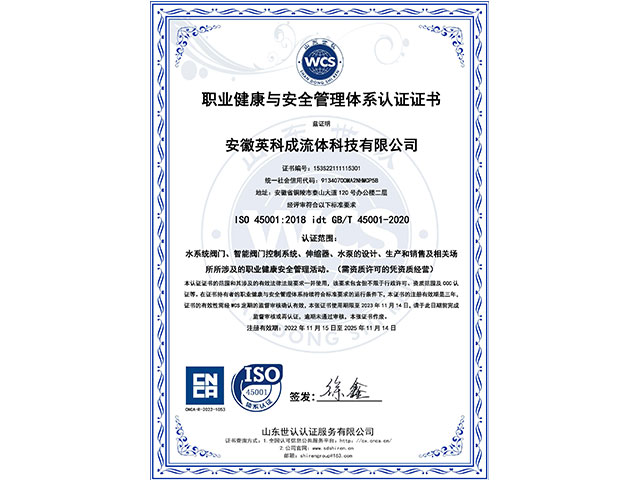 安徽英科成流體科技有限公司位于黃山腳下長江之濱的中國古銅都-安徽省銅陵市。公司注冊資金1.1億,是國內一家專業致力于給排水行業系統解決方案、閥門以及智能閥門技術研發與生產銷售服務為一體的企業。 我們擁有完善的質量控制體系和檢測設備,公司主要的產品有閘閥、蝶閥、偏心半球閥、液控蝶式止回閥、靜音止回閥、橡膠瓣止回閥、活塞式流量調節、錐型閥、節能型泵控閥、倒流防止器、減壓閥、排氣閥、排泥閥、伸縮器、閘門、啟閉機等二十多個系列,可以充分滿足客戶的一站式需求。……